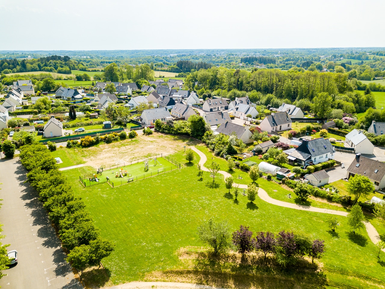 Située à l’est du centre-bourg, cette opération propose 24 lots viabilisés et bornés, libres de constructeur, aux surfaces comprises entre 376 m² et 595 m², permettant à chacun de concevoir une maison à son image.